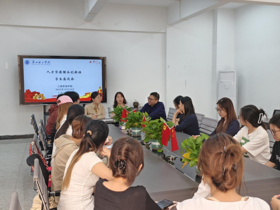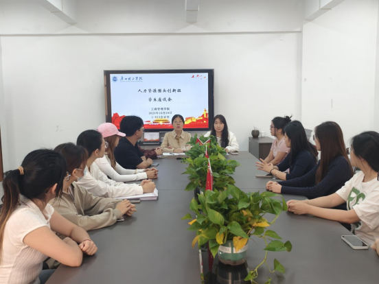 (何锦辉)为搭建实践经验交流平台,助力2022级人力资源猎头创新班人才培养提质增效,威廉希尔williamhill中文于10月29日在1-813室召开人力资源猎头创新班学生座谈会。威廉希尔williamhill中文教学院长刘琰、人力资源管理系主任周旭、专任教师张旭及第一批赴广州三棵榕企业管理顾问有限公司学习的学生代表与第二批即将启程的学生参与会议。