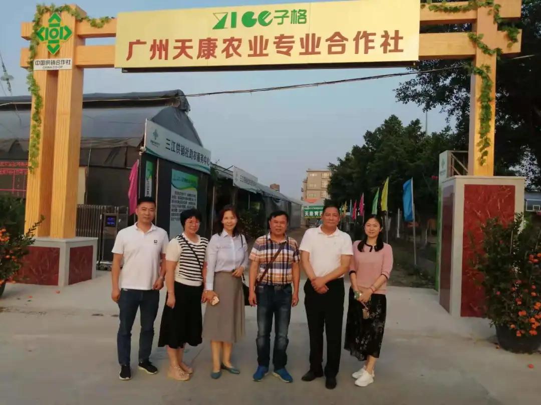 会谈结束后,调研一行人员参观了由三江供销社主导建立的广州天康农业专业合作社。石滩镇三江片区位于广州市、东莞市、惠州市交接地带,浩浩东江水从这里向南流过注入珠江,这里自然资源丰富,交通运输便捷,种植蔬菜、瓜果、香蕉、甘蔗和养鱼成为当地农民群众传统优势产业,形成了三江绿色蔬菜产业发展地带,是我区重要的蔬菜种植养殖基地,是粤港澳大湾区的蔬菜集散地之一,也是供销社服务“三农”的重要阵地。