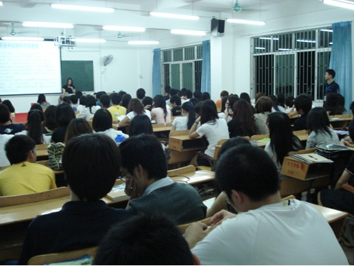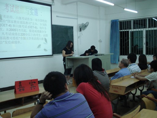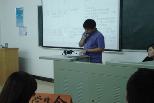 在会议中,我们邀请了七位通过2009年12月份四或六级英语考试的优秀08级师兄师姐,他们给大家讲解了如何学好英语,并在做试题时应该注意哪些问题,如:时间紧迫、观看全卷、在写作时多用短语等,这些都让在场人员获益匪浅。同时,我们在屏幕上播放四、六级的相关内容,让大家对四、六级的英语考试有更深刻的了解。