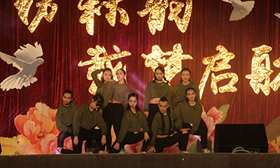 一段精彩的《梦启航》舞蹈表演拉开晚会的帷幕。晚会节目来自艺术团、艺术学院、体育舞蹈协会等部门,集歌唱、相声、舞蹈、跆拳道等多种演绎形式于一体,内容丰富、精彩纷呈。艺术学院副院长李丽丹领唱的歌伴舞《共筑中国梦》在欢歌声中用优雅的舞姿表达了对学校美丽辉煌事业的祝福和对伟大祖国繁荣昌盛的歌颂。体育舞蹈《天赐之舞》精彩绝伦,演员们动作流畅、气度潇洒、场景恢宏,尽显当代大学生的飒爽英姿。艺术学院师生省级获奖舞蹈《花儿正红》和艺术团以保护藏羚羊为主题的舞蹈《羚羊的外套》更是震撼全场。相声《我的军训》别出心裁,妙趣横生,用诙谐的表演回顾军训历程,引起新生朋友的强烈共鸣,现场欢笑声不断。轮滑、跆拳道、模特等表演形式依次登台,晚会气氛高潮不断。