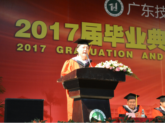 曾建权院长致辞并宣布《学士授予决定文件》。曾院长向毕业生们提出了六点希望:第一,适应形势;第二,脚踏实地;第三,不断学习;第四不断创新;第五,懂得感恩;第六,自强不息;并祝愿毕业生们前程似景、事业有成。
