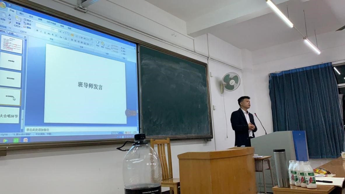班导师肖德明勉励大家向优秀看起、向努力拼搏的精神学习,在积极向上的班级氛围里面不断提升自己,为班集体争光,为学院学校争光!