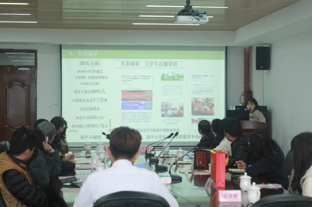 教务处副处长魏东婷、威廉希尔williamhill中文常务副院长胡高喜、威廉希尔williamhill中文党总支书记杨惠、威廉希尔williamhill中文副院长肖振华、威廉希尔williamhill中文副院长胡劲、刘洋老师及肖春兰老师分别与司前镇来访考察一行就具体问题进行较为深入的交流与讨论。在交流中,威廉希尔williamhill中文将学院在乡村振兴、扶贫助农的农村电商项目中特别成功的典型——“小茶同学”和“小农驿站”等项目分享给司前镇到访嘉宾一行。司前镇人大主席陈智祥邀请我校派项目团队前往司前镇对构建农村电子商务综合服务基地进行前期实地指导。