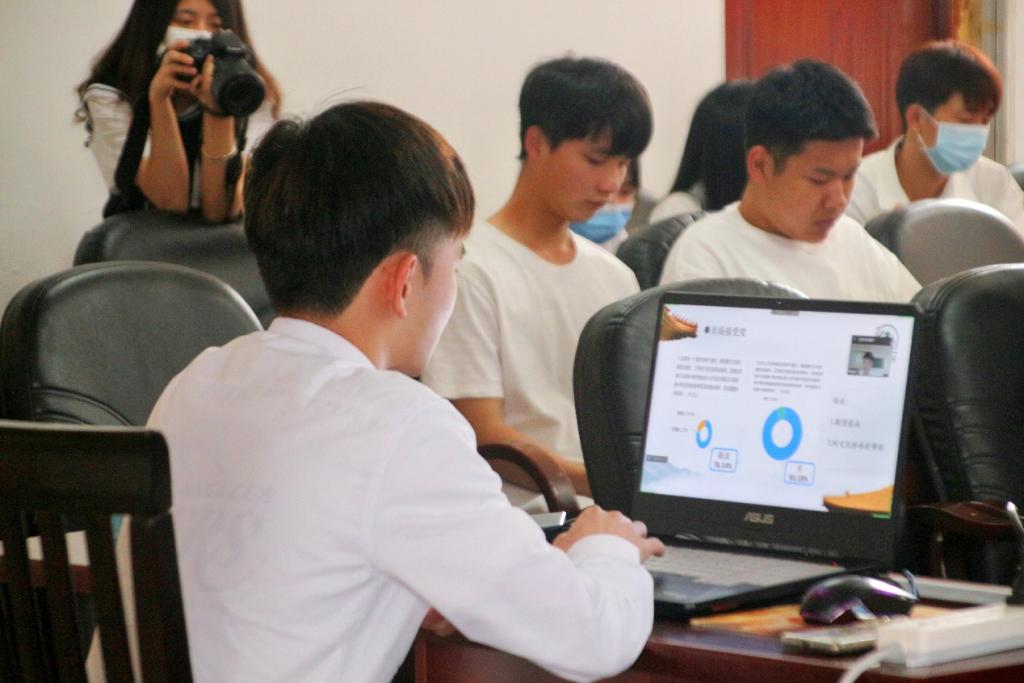 本次比赛采用“线上+线下“的形式,共有15支入围团队展开激烈角逐。比赛内容分为演讲环节和答辩环节,演讲环节中项目主讲人需在五分钟内完成项目展示,随后评委在线上进行项目提问,参赛人员再针对评委所提问的问题进行三分钟内的答辩。