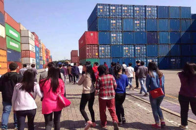我们首先来到是广州鼎胜物流有限公司。广州鼎胜物流有限公司(简称GPL),是由广州港集团与新加坡港务集团合资成立的大型现代物流公司,也是黄埔海关关区内的第一个物流海关监管区。工作人员带领我们参观了仓库,集装箱堆场、洗箱、修箱,铁路货仓,还有海关监管仓库。在参观过程中,同学们表现出很大的兴趣和热情。参观的时候遇到集装箱叉车正在作业,我们观看了集装箱叉车作业的整个过程。紧接着我们来到集装箱修箱洗箱区,几位工人围绕着残旧的箱子进行修整。