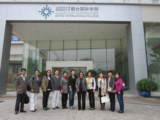 本系讯 为了更好地贯彻学院“加强课堂教学,提高本科质量”的精神,在董事长的亲自关心和院领导的直接支持下,2013年11月21日上午,在我系常务副主任伍曙的带队下,副主任肖振华及教研室主任刘金国、胡劲等一行9名教师前往北京师范大学及香港浸会大学联合国际学院(UIC)进行访问学习,受到该校工商管理学部院长左龙佩兰女士及相关人员的热情接待。
