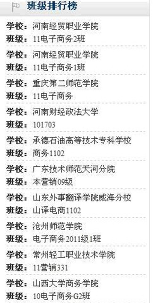 我系本营销09级班级排名在2012年秋季网络营销能力秀活动排名进入前十: