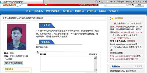 (通讯员:刘洋)管理系本科市场营销专业专业课——《网络营销》由本系骨干教师,商务教研室的刘洋等老师负责授课。授课教师在教学实践中不断探索创新,连续指导本系2007届、2008届和2009届的市场营销专业学生参加了三届大学生网络营销能力秀活动。