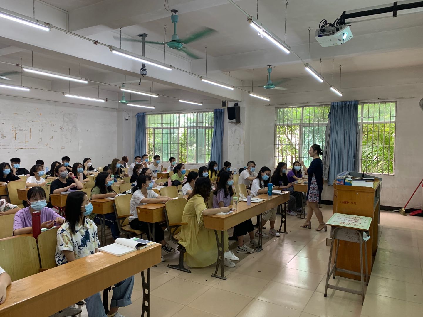 在检查中,各班级教师与学生均能按照我校疫情防控的要求,做到了课堂环境的通风、学生之间保持距离就坐、课前师生共同学习我校校园新冠疫情防控须知、课堂上师生佩戴医用口罩等。阔别校园已久的师生们重新回到了校园,重新以熟悉的方式开始了学习,虽然口罩挡住了师生们的面容,但却挡不住同学们对校园课堂的向往、对学习新知识的热爱,也挡不住老师们教书育人的热情。