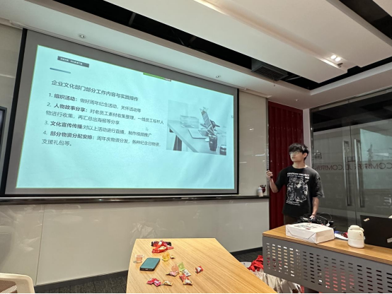 随后京苗班的学子们分组进行实习成果总结汇报。同学们详细展示了实习期间的收获和心得体会。在汇报过程中,同学们高度赞扬了京东的企业文化,同时纷纷感谢实习期间导师热心的指导和帮助,让他们接触到了更多的专业知识,与组员分工协作的过程中也收获了许多实践技能。