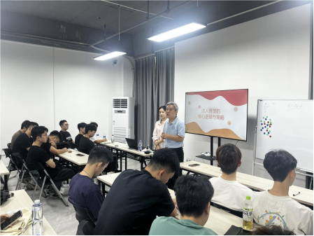 倪江崴副院长与共建企业及带队老师沟通交流后,就学校创建实践基地的目的与意义向全体参加实训的学生进行讲话。倪副院长指出,全面深化校企合作模式,整合校企双方优势资源,推进科产教融合,打造具有威廉希尔williamhill中文实践教学特色的校外实践教学基地是学院一直以来重点推进的工作。同学们应当把握校外实训的宝贵机会,结合自身专业特点和实训课程内容,把握行业最新发展趋势和市场导向,依托真实的企业项目积累实践经验,不断提高专业素质和实践能力,为未来的职业生涯奠定坚实的基础。