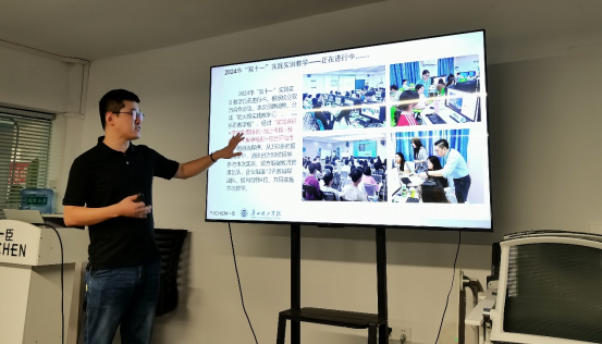 2024年“双十一”实践实训教学正在进行中。根据校企双方合作协议,本次品牌调整,分成“周大福实践教学组”、“凯乐石教学组”,经过“实践宣讲+学生自愿报名+线上考核+班会辅导+集中培训+综合评估考核”的遴选程序,从350多名报名同学中,遴选出近80位同学参与本次实训,双方组建教师管理团队,企业组建12名教辅导团队,校内导师4位,共同实施本次实践教学。