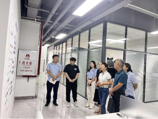 张世梅副校长一行在广州共盈传媒有限公司业务总监梁友宾以及基地负责人宋旸的陪同下参观了共盈传媒公司的办公区域、直播间、学生实践实训教室、拍摄间,全面了解了基地在承接实训任务、校企联合打造实训课程《直播达人建联实训》、提升学生专业实践能力、促进学生实习就业方面所取得的成效。
