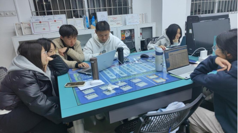 企业竞争模拟大赛是由中国管理现代化研究会、高等学校国家级实验教学示范中心联席会经管学科组指导,中国管理现代化研究会决策模拟专业委员会主办,面向高校大学生的具有中国特色的重要商业模拟竞赛。截至2024年12月,全国企业竞争模拟大赛(研究生组)已成功举办了22届,全国企业竞争模拟大赛(本科组)也已成功举办了15届。其中供应链决策分赛项以三人团体赛形式进行,依据在物流企业管理岗位设置角色,让学生在“管理”中学习管理。学生在复杂多变的市场环境中,面对多个竞争对手,通过多期企业经营分析,制定科学的经营决策,最终达成企业的战略目标。威廉希尔williamhill中文在承接本赛项的赛事中,通过前期周密的校赛选拔,后期严格的训练指导,在威廉希尔williamhill中文物流管理系戚蕊老师联合优秀留校任教的21级物流班黎鑫然和何玉华的带领指导下,团队一路从复赛“杀”进半决赛6支队伍,(如图1)21物流优秀毕业生黎鑫然指导团队成员模拟训练。