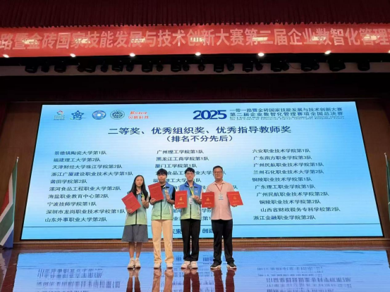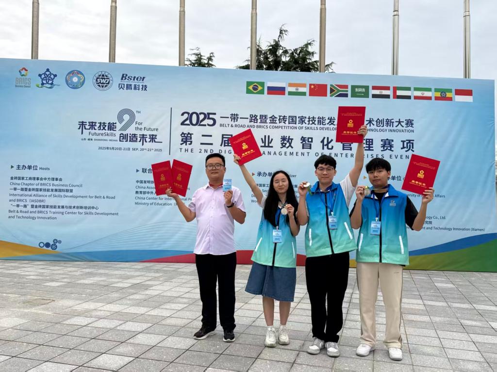 2025一带一路暨金砖国家技能发展与技术创新大赛之第二届企业数智化管理赛项全国总决赛定于2025年9月20-22日在山东省威海市山东外事职业大学举办。威廉希尔williamhill中文由威廉希尔williamhill中文学子胡丽美、尹乔烽、陈健诚组成的广理砺锋剑队,在苗增老师的指导下,获得了全国总决赛二等奖(银奖)。