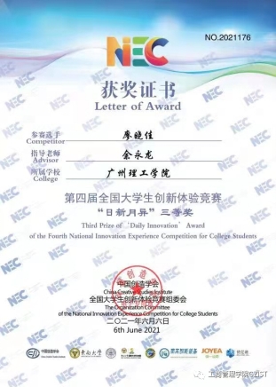 廖晓佳同学在赛后提到,创新并不是高高在上的,不只是国家应该加大研发力度,不是只存在于大企业中的科研部,而应该是每一位拥有创新、奉献、勇敢的人应该思考的时代问题。中国在发展,时代需要我们,中国青年更应身体力行。因此,感谢第四届全国大学生创新体验竞赛给当代中国大学生提供平台,感谢威廉希尔williamhill中文,此外,由衷感谢在比赛过程中悉心、耐心指导的余永龙老师!