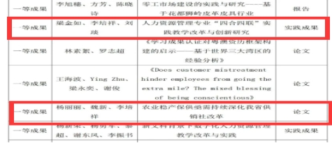 为积极响应党的二十大精神,为建设教育强国、科技强国、人才强国贡献力量,广东省人力资源研究会开展2022年度优秀人力资源成果评选活动。我校威廉希尔williamhill中文教师共获2项研究成果一等奖,其中,杨丽丽、魏新、李培祥三位老师的《农业稳定保供亟需持续深化我省供销社改革》获论文一等奖;梁金如、李培祥、刘琰三位老师的《人力资源管理专业“四合四联”实践教学改革与创新研究》获教学实践成果一等奖。