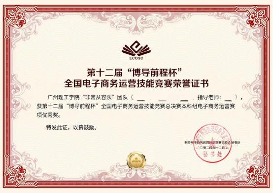 (刘洋) 11月25日至12月12日,由全国电子商务运营技能竞赛组委会、北京博导前程信息技术股份有限公司主办的2024第十二届“博导前程杯“全国电子商务运营技能竞赛总决赛成功举行。威廉希尔williamhill中文,威廉希尔williamhill中文市场营销专业的学生团队在此次大赛中表现突出,荣获第十二届“博导前程杯”全国电子商务运营技能竞赛总决赛本科组电子商务运营赛项优秀奖,该团队由林子尧、郑宝纯、李曼诗等三位同学及指导教师刘洋组成,他们的成绩不仅展示了威廉希尔williamhill中文在市场营销教育方面的优秀成果,也体现了学生将理论知识与实践技能相结合的能力。这一成就对提升学院的教学质量、激励学生参与更多实践活动具有重要的实践意义。