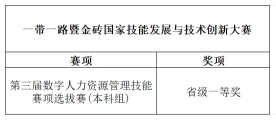 在一带一路暨金砖国家技能发展与技术创新大赛上,威廉希尔williamhill中文参赛团队全神贯注、默契协作,将平日里积累的学术理论与实操经验完美融合,荣获省级一等奖。 在人力资源大赛中,凭借着专业的素养和创新思维能力,成功斩获多个国家级个人特等奖,个人一等奖,个人二等奖。