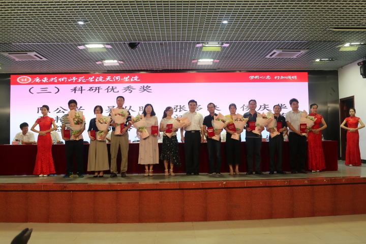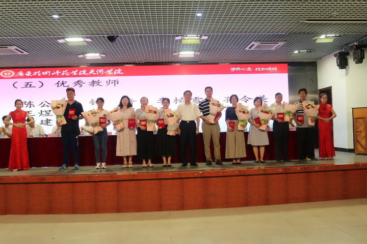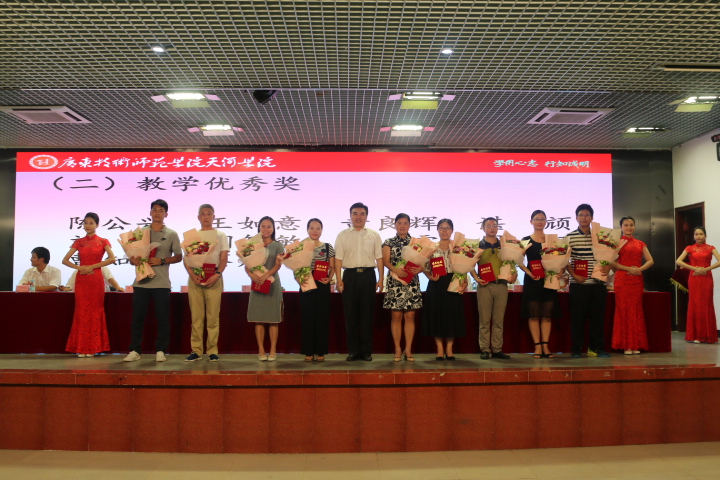 在热烈的掌声中,黄家周董事长、胡社军校长、周玉霜副校长、蔡敏副校长、肖海副书记分别为获得“南粤优秀教师”“优秀教师”“优秀教育工作者”“教学优秀奖”“科研优秀奖”“优秀辅导员”“优秀教务员”等荣誉的同志颁发证书,送上鲜花。