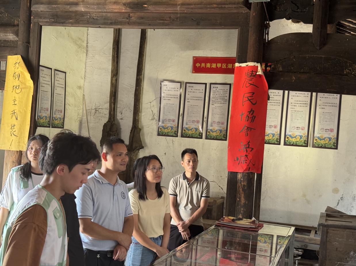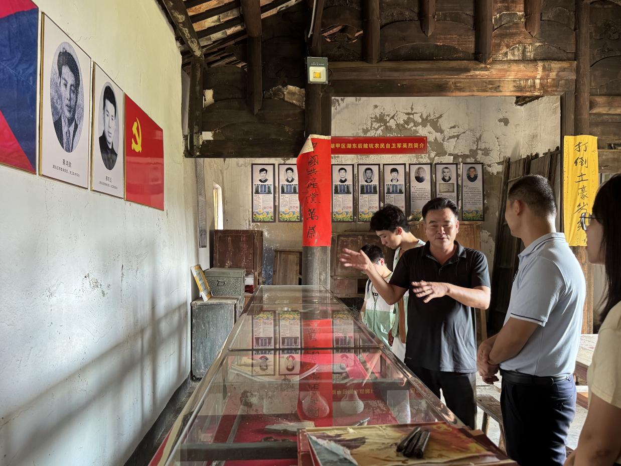 实践队首站抵达后陂坑村。在村蔡书记带领下,队员们探访了中共南湖甲区湖东后陂坑自卫军革命活动旧址。珍贵革命遗物的展示和蔡书记动情的讲述,让队员们深切感受到革命先辈为民族解放付出的巨大牺牲。