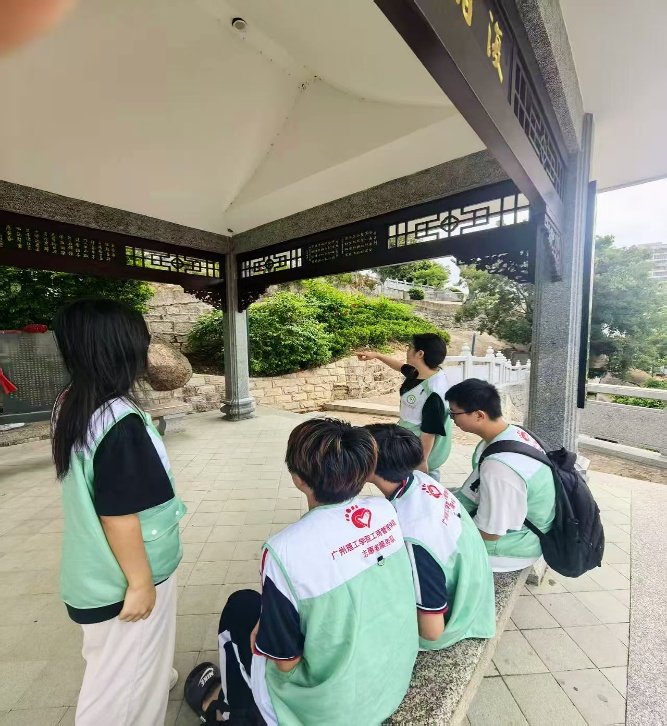 沿蜿蜒石阶拾级而上,蝉鸣与海风交织成独特的自然乐章。队员们在待渡山的进食亭驻足,指尖拂过斑驳的石像,仿佛触摸到时光的纹路。范良臣捧食的姿态凝固着民生情怀,郑复翁勤王的赤诚彰显着家国大义,而山脚下静静流淌的瀛江,仍在低吟“大胆山”的由来——当年君臣在此重拾勇气的故事,让一座山的名字超越了地理意义,成为世代相传的精神图腾。这份沉淀千年的“静”,让队员们深刻体会到历史的厚重,更懂得敬畏根脉、守护文化初心。