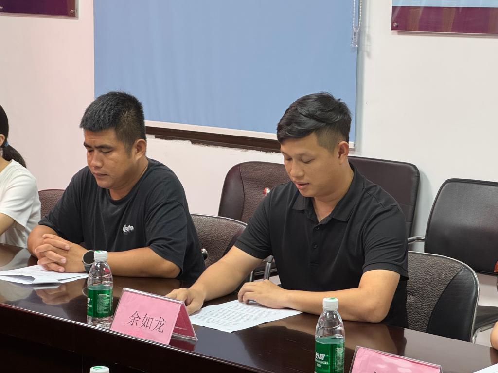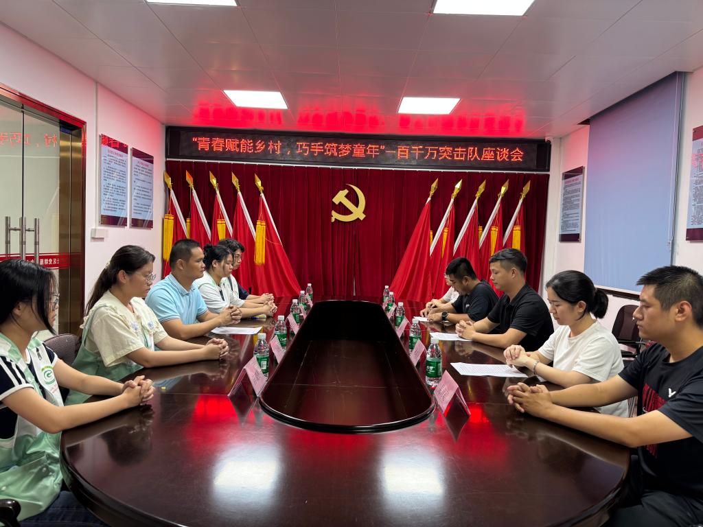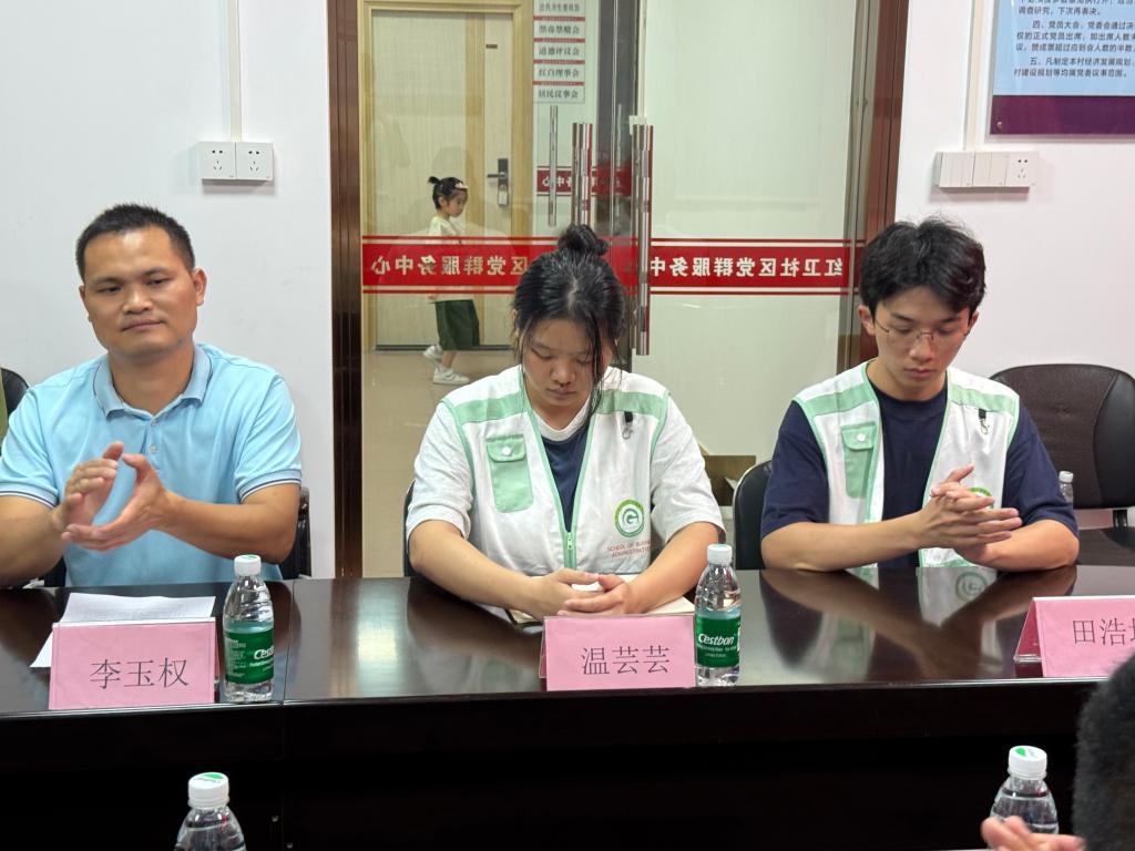 活动伊始,实践队与指导老师李玉权同红卫社区共青团书记余如龙、居委会副主任郑期中、东海街道驻村干部林蔓仪等开展座谈交流。会上,余如龙书记对实践队的到来表示热烈欢迎;林蔓仪干部详细介绍了红卫社区的建设成果与未来规划;李玉权老师阐述了学校“三下乡”实践活动的宗旨与目标;队长温芸芸则具体介绍了本次暑期DIY手工课堂的设计理念与活动安排。四方围坐,共绘社区教育新图景。