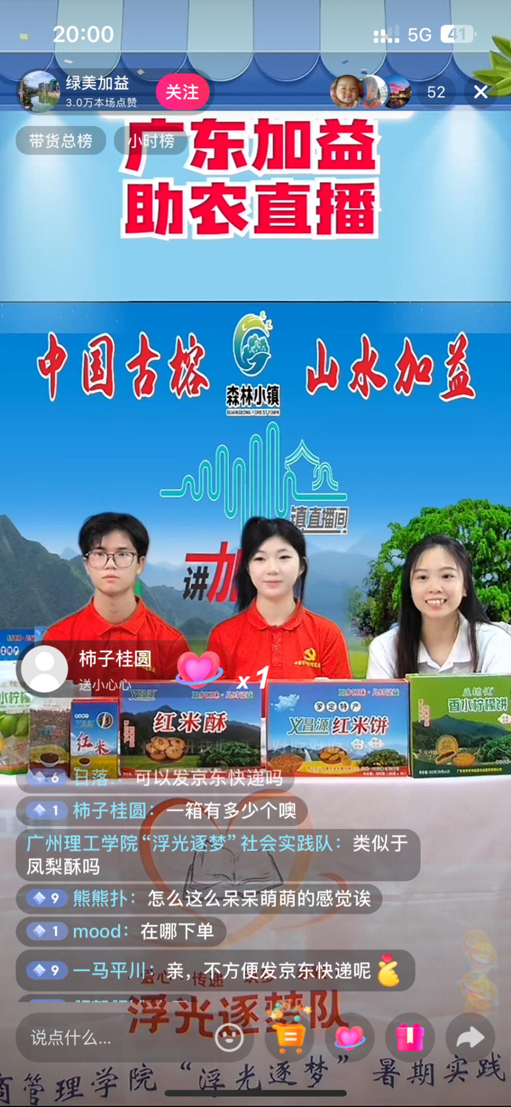 直播当日,实践队队员与当地主播默契配合,围绕“罗定特产·加益优品”细细介绍。结合前期对产品的了解,队员们带着真诚向直播间的观众们分享直播间的优质好品。并通过实物细节展示,让直播间的观众更加直观的关注到香水柠檬的切片与红米饼粗粮掰碎的声音 ;和试吃体验分享,描述了柠檬饼内馅酸甜层次与红米酥的酥脆口感,直观传递产品品质。“限时上架”互动环节紧扣节奏,激发观众消费热情,直播间气氛持续升温。据加益镇直播团队反馈,本场直播借助青年学子的青春视角与推广活力,实现特色物产市场触达面拓宽,销量较平日显著提升,为乡土产业数字化传播积累实践经验。