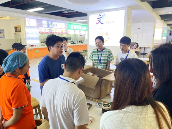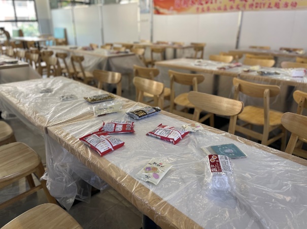 中秋手作活动筹备超用心!工作人员细致摆放冰皮粉、特色馅料等食材,把月饼样式的模具、消毒手套、定制包装盒等物料一一摆放整齐;第八社区辅导员、活动指导老师兰凌玉亲临现场,反复叮嘱要注意食材卫生、规范操作,使用工具和热水时需留意安全,用心保障同学们享温馨中秋手作活动时光。