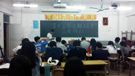 接着,就省团委下发的“三走行动”,提倡大家走下宿舍、走出网络、走向操场,多加强体育锻炼,丰富人际交往。此外,上周社团文化节已经开幕,号召大家踊跃参加课余活动。