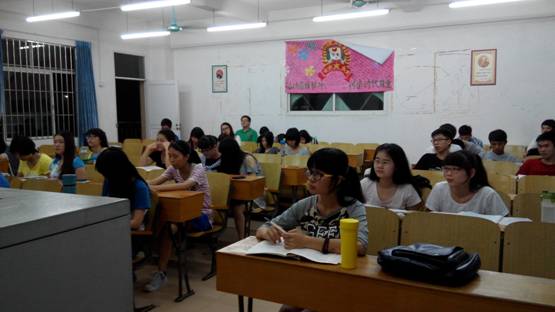 在开班会的过程中同学们认真聆听主持人防火注意事项以及消防方法。