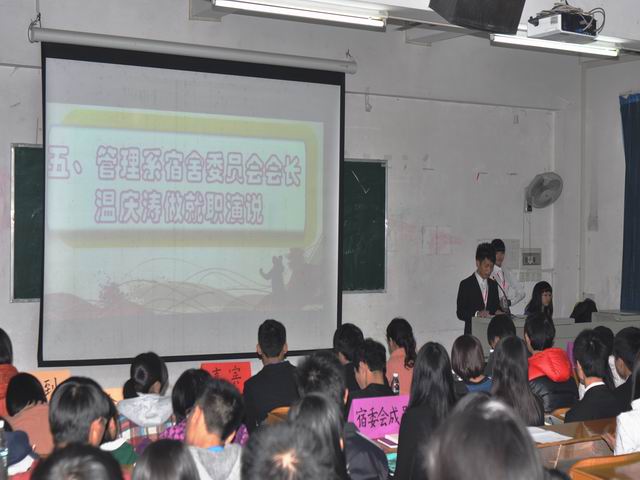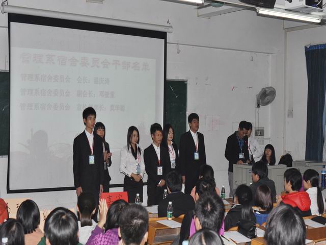 本系讯(通讯员:林佳荣)我系宿舍委员会成立大会于12月2日晚19:30在4栋101课室召开,与会嘉宾有我系党总支书记杨晓文、办公室主任钟清恒、团总支书记钟劲、宿委会指导老师林成园、系办公室辅导员、各组织代表;宿委会全体成员和大一、大二全体宿舍长也参加了本次会议。