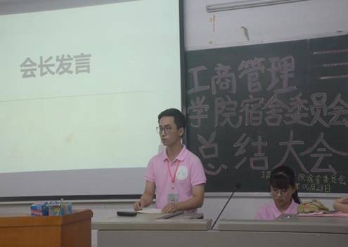 主持人宣布总结大会正式开始。首先是各部门大一干事代表上台发言,干事代表们总结了这一学期来自己的收获和对将来的工作期待;其次是宿委策划组的代表发言,发言中表示对五月份的“左邻右舍”文艺汇演暨红旗宿舍表彰大会的圆满举办表示祝贺,并抒发了感想;紧接着是各部门的部长上台发言,部长们对各位干事的工作表示肯定的同时,也提出了一些建议;然后是会长陈其承发表讲话,会长表示宿委的工作可圈可点,提出了一些意见和建议,也表示对宿委未来的展望。