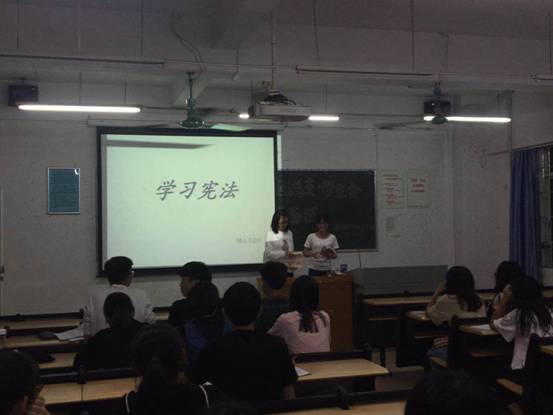 会中,各班根据本班学生的特点及接受能力,精心准备了生动、活泼,寓法寓理的讲稿、课件与视频,通过查阅资料、集体讨论、谈论想法等多种形式学习宪法内容,了解宪法章程,宣传法律知识,让全体学生树立法制观念,弘扬法制精神。