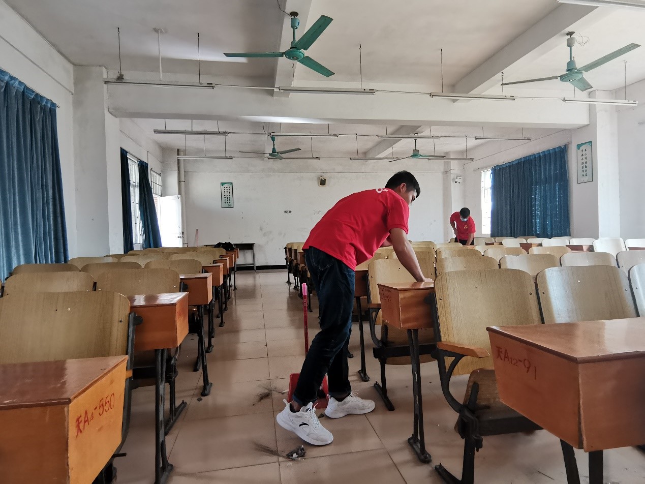 下午3点,党员同志们于6栋咨询台集合完毕。黄远鹤同志进行简单的注意事项说明和教室清洁人员安排之后,同志们来到各自被分配到的教室,有序开展清洁工作。党员同志们积极投身于其中,两人一组分工合作,秉持精益求精的精神,有序地进行课室清洁,不放过室内的每一个角落。党员同志们干劲十足,充分发扬不怕脏、不怕累、不怕苦、艰苦奋斗的精神,以劳动为荣,乐在其中。通过大家的努力,党员同志们一共打扫了20多间课室,教室面貌焕然一新,为威廉希尔williamhill中文全体师生营造了一个洁净,舒适的校园环境。