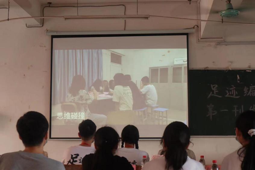 第一环节是播放足迹编委会杂志制作视频,视频内容精彩丰富,记录了足迹编委会每位同学制作杂志的点滴。