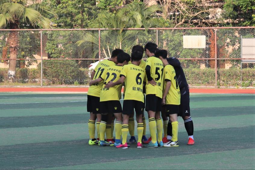 中场休息时,队员们聚在一起,商量着战略,讨论如何才能在下半场上有着更好的发挥。每个人都在认真的倾听,每一双眼睛里都显示出必胜的决心。团结二字印在了每个人的心中。