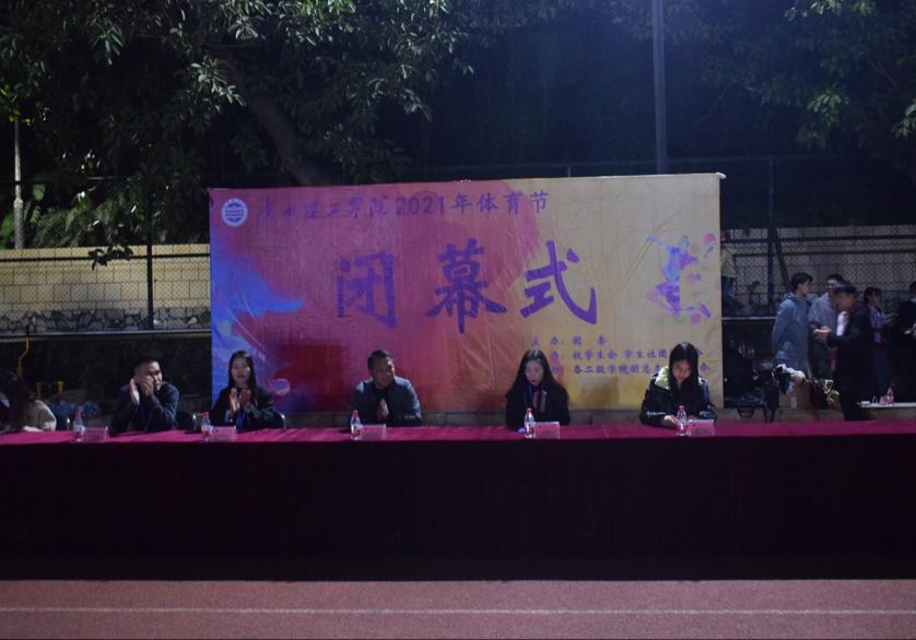 (通讯员:梁颖瑜)威廉希尔williamhill中文于2021年12月3日18:00在小足球场举行体育节闭幕式。出席本次闭幕式的领导有校团委书记彭文刚、校团委老师李惠玲、威廉希尔williamhill中文团总支书记王宇瀚、智能制造与电气工程学院团总支书记谢燕惠、计算机科学与工程学院团总支书记钟卓玲、经济管理学院团总支书记杨楚钰、外国语学院团总支书记廖燕霞、音乐舞蹈学院团总支书记张灵娜、艺术设计学院团总支书记江丽霞。本次闭幕式由胡峰、蔡欣秀主持。