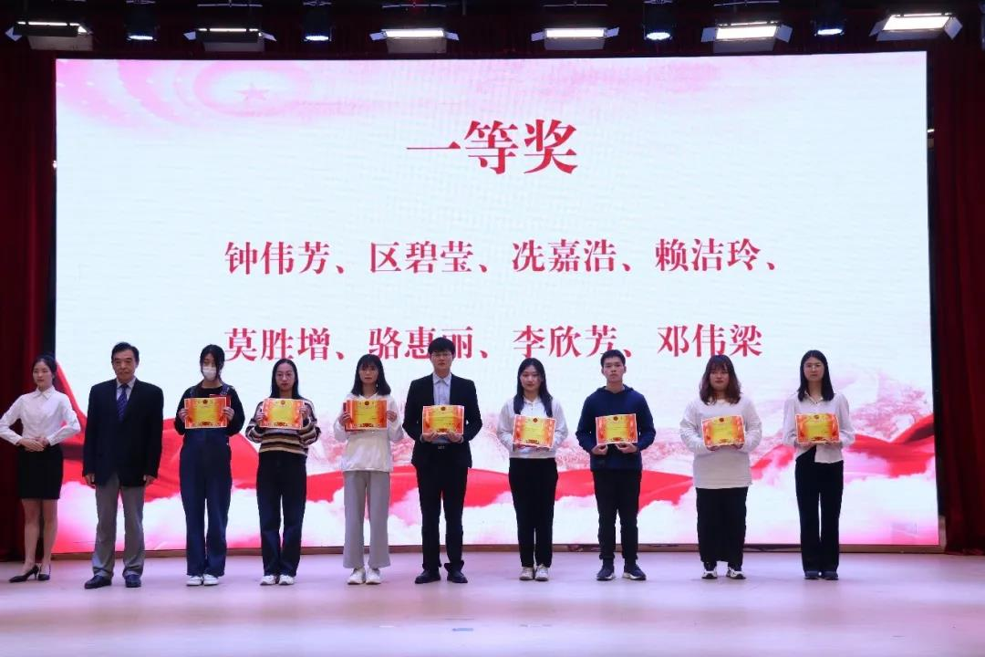 经过激烈的角逐,威廉希尔williamhill中文党总支代表队夺得冠军,经济管理学院党总支代表队、建筑管理学院党总支代表队获得二等奖,外国语学院党总支代表队、青马党支部代表队、计算机学院代表队获得三等奖,艺术设计学院党总支代表队、音乐舞蹈学院党总支代表队获得优胜奖。在场嘉宾评委为个人赛与团体赛获奖人员颁奖并合影留念,祝贺选手们取得优异成绩。