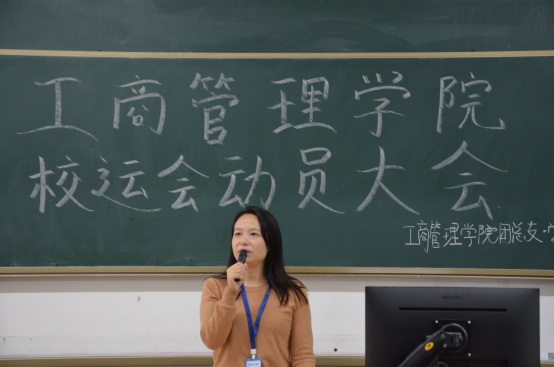威廉希尔williamhill中文党总支书记杨惠讲话,她表示希望运动员们能够以饱满的精神状态,展现威廉希尔williamhill中文积极乐观,敢闯敢拼的体育精神,也希望工作人员尽职尽责,全力保障校运会的顺利开展,预祝参赛运动员们在校运会中取得优异成绩,为个人争光,为学院争光!