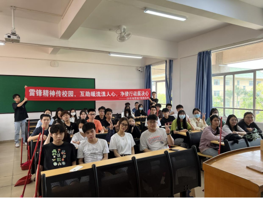 为进一步学习和弘扬雷锋精神,在学校团委和学院团总支的号召下,20营销7班(Z)积极开展”雷锋精神传校园,互助暖流漾人心,净楼活动展决心”的主题活动。3月23日,同学们以团支部为单位,紧紧围绕校团委和学院团总支部署,根据班级的活动方案,全体班级成员利用下午课余时间,在辅导员刘丹老师和团支部书记的带领下进行义务打扫活动。