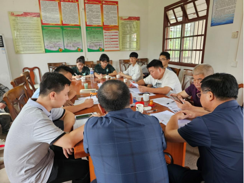 (八社村村支书与第一小组成员交谈 何锦辉摄)