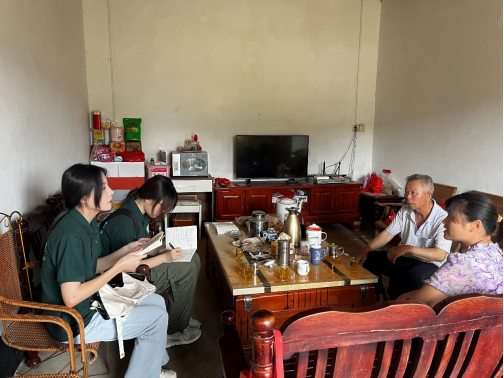 第二小组成员在当地村干部的带领下,走访龙文村,与龙文村负责人共同商讨当地情况以及油茶和蜂蜜的销售情况。经了解,龙文村油茶种植面积100亩,产量可达5000斤,每年10月初农户挑选优质的油茶籽,经过洗、煮、晒、烘等工序后,制作茶色油香的油茶叶,经由个体销往市场。当前龙文村158户多为留守老人和留守儿童,为此团队成员与当地负责人针对农户发展问题,贴合当地政策,初步交流探讨可实行方案,以进一步推动龙文村乡村乡振兴的发展。