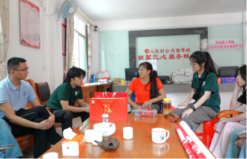 与村干部邱丽芳进行访谈 何锦辉摄
