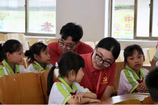 实践队队员与小朋友们互动 杨伟琼摄
