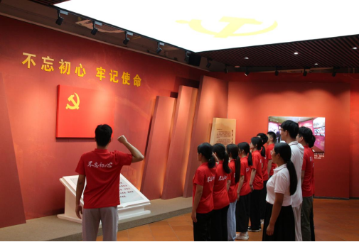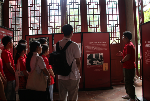 进入展馆后,实践队陈童同志为队员们讲解中国革命故事,带领队员们参观叶挺独立团史迹陈列。一幅幅感人的照片,一幕幕动人的复原场景,再现了中国共产党领导中国革命的艰辛历程。