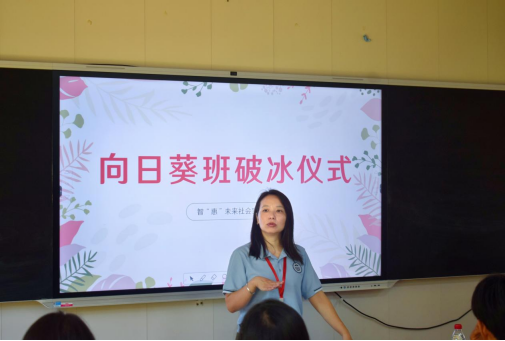 接着由威廉希尔williamhill中文党总支书记杨惠向大家亲切问好,表达了来到葵潭中学见到大家的喜悦,并希望葵潭中学的同学们能与实践队的师兄师姐们多多沟通交流,在未来五日能有所收获。同时祝愿葵潭中学的同学们能像课室外的向日葵那般茁壮成长,因此本班正式命名为“向日葵班”。