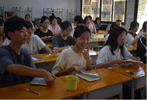 (张运枫)7月10日14点30分,智“惠”未来社会实践队前往葵潭中学为向日葵班开展第一节正式课程。此次课程主要内容为拓展开放性思维与提前对大学未来四年进行规划,旨在促进学生们的思想进步,加深对大学未来四年规划的理解,提升学生的学习热情。