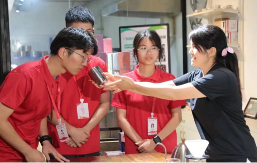 实践队队员们观看冲泡咖啡过程