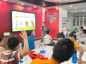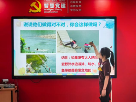 暑期是中小学生溺水事故的高发期,为了预防暑期未成年人溺水事件的发生,从小培养未成年人的防溺水意识显得尤为重要。讲解员们不断和小朋友强调如果要去游泳,一定要去安全、正规的游泳场所!队员们还运用生动的案例和实体操作,带领大家在欢快的氛围中学习防火灾和防踩踏的安全知识,提醒孩子们暑假期间,注意人身安全。